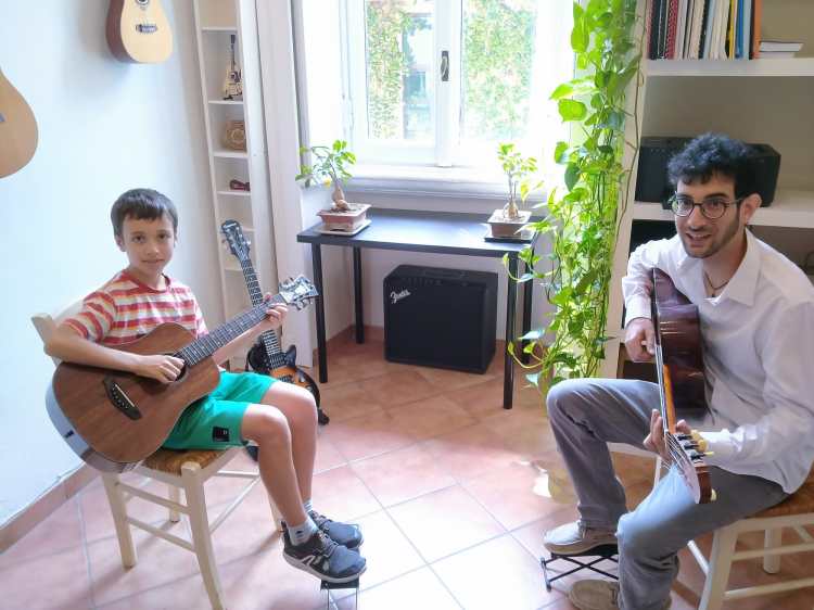La nostra scuola di chitarra è caratterizzata da un metodo coinvolgente ed efficace. La proposta di repertorio è studiata per adattarsi alle esigenze e agli interessi musicali degli studenti, che potranno scegliere fra chitarra classica, acustica ed elettrica. Gli elementi di tecnica vengono sviluppati di pari passo con la difficoltà dei brani proposti, così da permettere agli allievi di migliorare le proprie abilità chitarristiche senza dover passare dalla selva di esercizi e scale che spesso compromette l’interesse per lo strumento e per la musica.